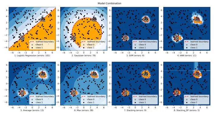 包括多种合并方法 ,从最简单的平均到在Kaggle中常见的Stacking,再到更复杂的Dynamic Classifier Selection(动态分类器选择)。