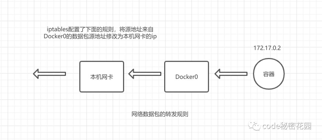 DNAT 同样 Docker 内部访问外部接口也会进行源地址转换(SNAT), 容器内部请求 google.com , 服务器上收到的将是主机网卡的 ip。