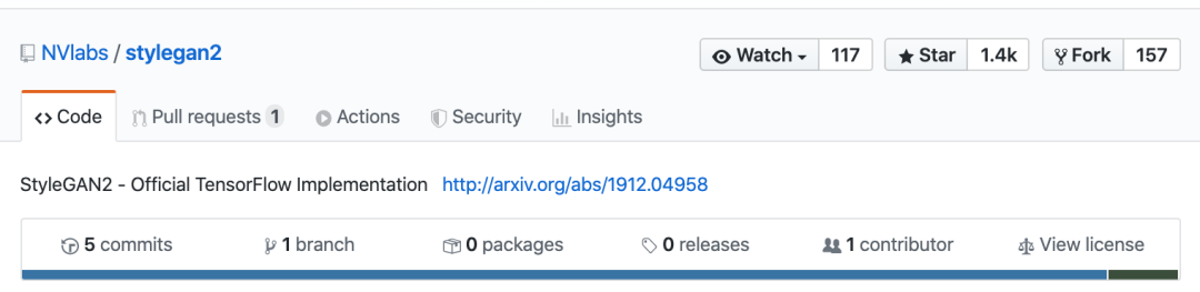 StyleGAN2 一推出,很快就登上了 GitHub 趋势榜的第一名,目前 Star 数已经达到 1.4K。