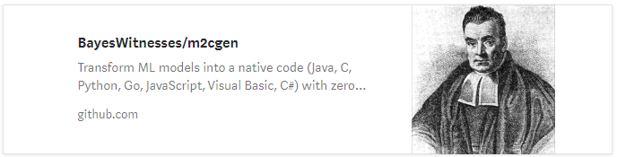 13、m2cgen:一个简单的库,将ML模型转换为本地代码(Python / C / Java)