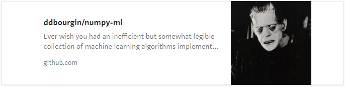 numpy-ml是越来越多的专门用NumPy和Python标准库编写的机器学习模型、算法和工具的集合。”