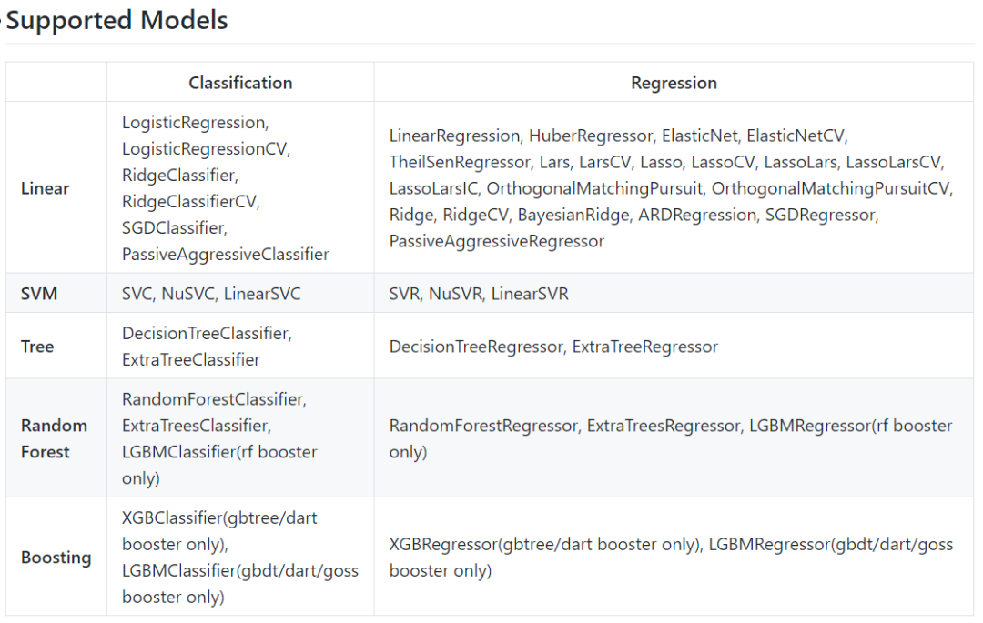 当前支持的模型如下: