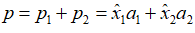 然后投影向量p依旧被表示为这组基向量的线性组合形式: