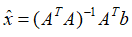 我们还是将这一组空间的基向量构造成矩阵A的各列,矩阵A 表示为:,系数向量为:,投影向量p依旧表示为:,同样有:。