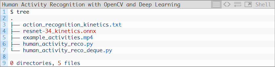 图3:利用OpenCV和深度学习实现人类活动识别所需文件