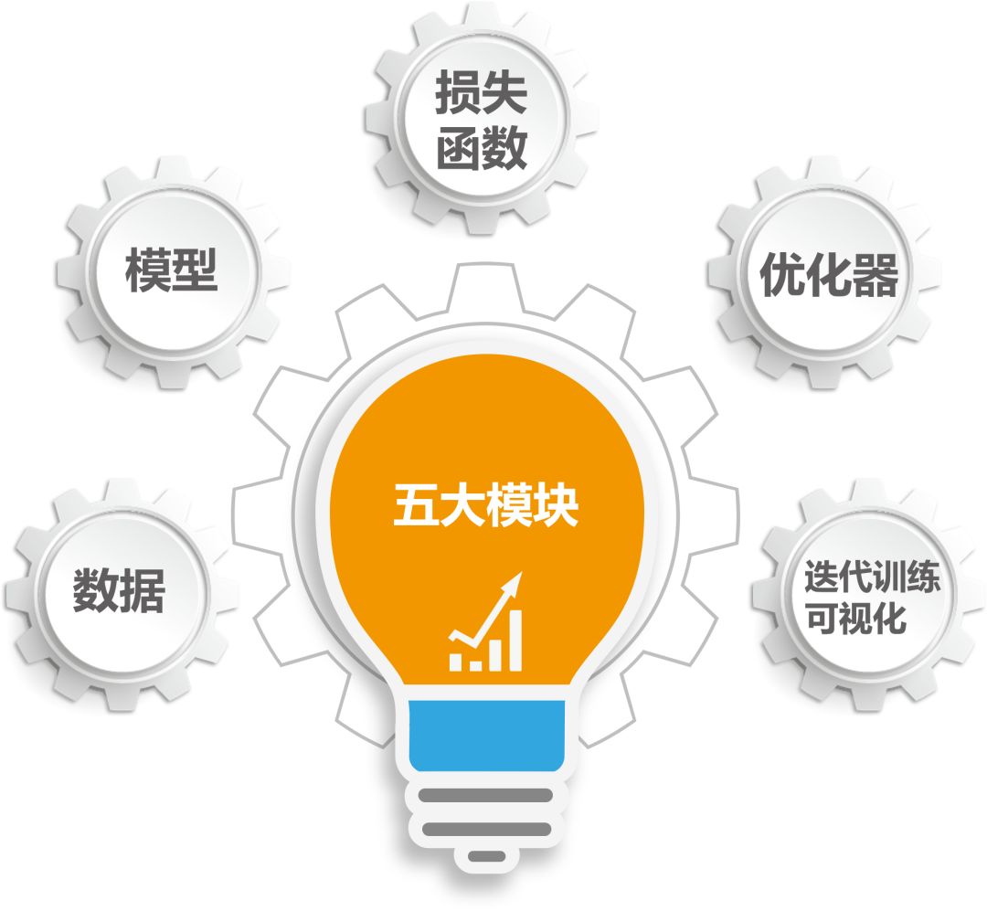课程基于实战讲解PyTorch基本概念,依模型训练过程所涉及到的五大模块进行学习