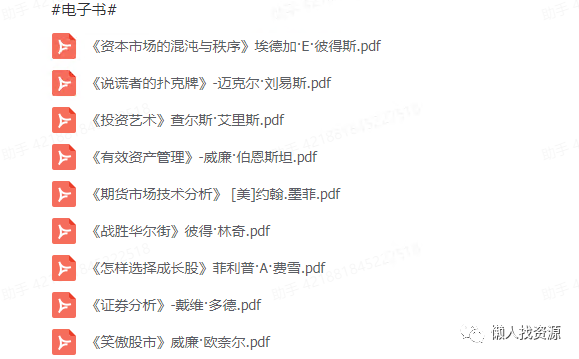 各种投资类书籍,估计体验群会有很多群友们感兴趣。在15模块。