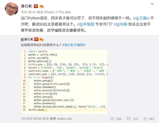 2、潘石屹谈学习Python:打开知识世界大门最直接的钥匙