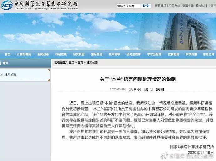 19 日下午,中科院计算所关于「木兰」语言事件作出回应: