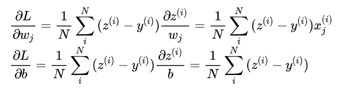 借助于Numpy里面的矩阵操作,我们可以直接对所有 一次性的计算出13个参数所对应的梯度来。公式看不懂没关系。且看下述代码如何实现梯度计算,网络训练和参数更新。def gradient(self, x, y): z = self.forward(x) gradient_w = (z-y)*x gradient_w = np.mean(gradient_w, axis=0) gradient_w = gradient_w[:, np.newaxis] gradient_b = (z - y) gradient_b = np.mean(gradient_b) return gradient_w, gradient_b