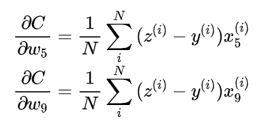 def update(self, graident_w5, gradient_w9, eta=0.01): net.w[5] = net.w[5] - eta * gradient_w5 net.w[9] = net.w[9] - eta * gradient_w9