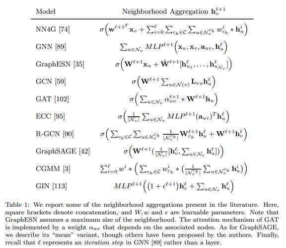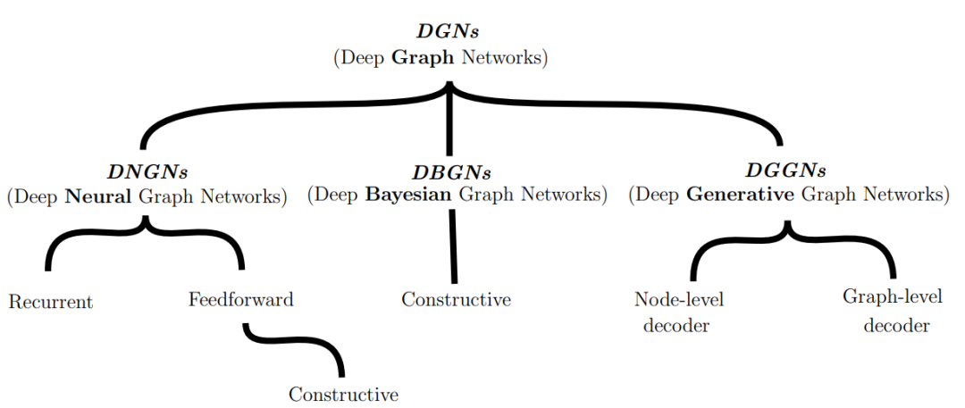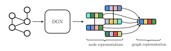 图 2:所有图学习方法共享的机制。向深度图网络(DGN)输入图,它将输出节点表示 h_v, ∀_v ∈ V_g。将此类表示聚合起来,即可得到图表示 h_g。因此,研究者和从业人员的工作围绕着深度学习模型的定义展开,这类模型从图中自动提取相关特征。本文将此类模型统一命名为「深度图网络」(Deep Graph Networks,DGN)。一方面,该通用术语可以将图神经网络(GNN,[89])和图卷积网络(GCN,[59])区分开来。该领域文献中常常使用 GNN 和 GCN 表示在图数据上运行的全部神经网络类别,给从业人员造成概念模糊和混淆。另一方面,本文使用 DGN 作为模型分类的基础(详见图 3),该分类即本文讨论的路线图。本文将 DGN 分为三个大类:深度神经图网络(DNGN),此类模型受到神经架构的启发;深度贝叶斯图网络(DBGN),其代表性模型是图概率模型;深度生成图网络(DGGN),包括利用神经模型和概率模型的图生成方法。该分类绝非对方法论的严格划分,事实上,本文关注的所有方法均基于局部关系和迭代处理来散布图中的节点语境(node context),与其神经或概率本质无关。在本章的后半部分,作者还介绍了信息的局部关系和迭代处理以及三种语境散布(Context Diffusion)机制,详细内容可参见论文。现在,我们把注意力转向局部图学习模型的主要构成部分。这些构造块的架构偏置决定了模型可以计算的表示类型。本章目的不是为所有模型提供最综合通用的公式,而是展示多个架构共同使用的主要「组件」,以及如何结合这些组件来构建有效的图学习模型。本章讨论了基于局部和迭代处理的 DGN 是如何利用可用信息的,主要内容包括: