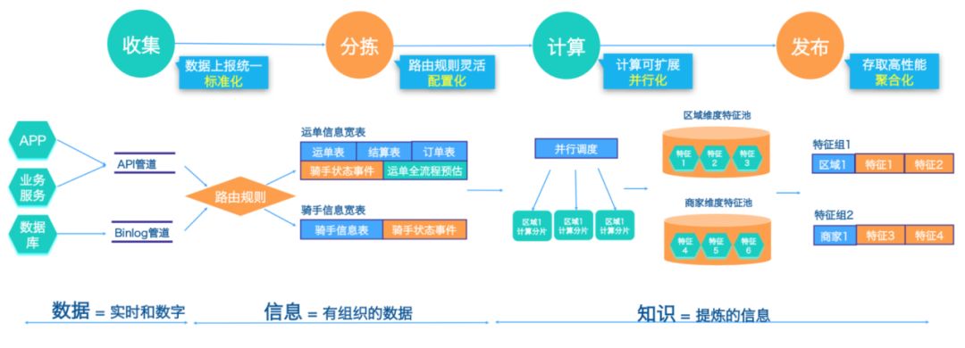 - 实时特征平台,实时收集线上数据,计算提炼成算法所需要的特征,并实时推送应用到线上。