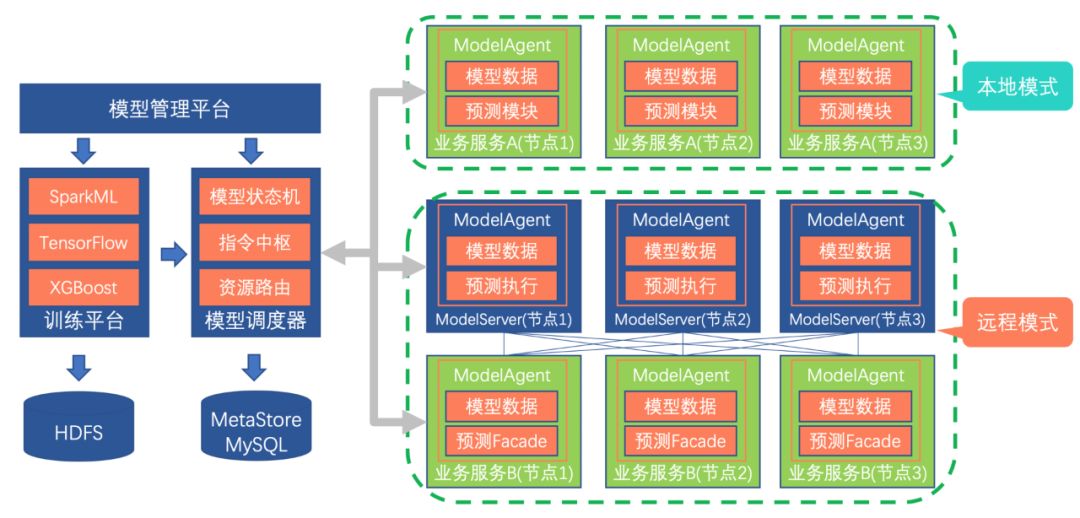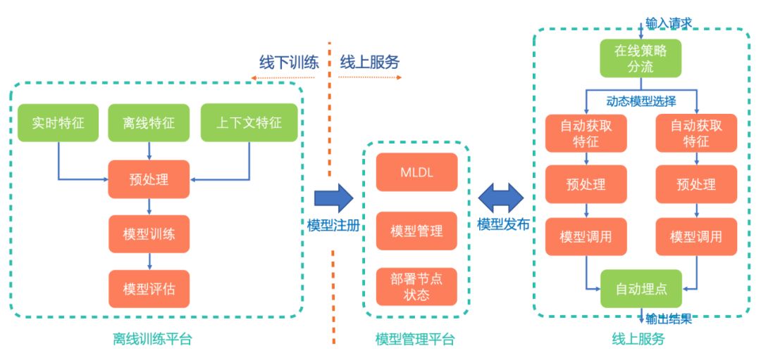 - 模型管理平台,提供统一的模型注册、发现、部署、切换、降级等解决方案,并为机器学习和深度学习模型实时计算提供高可用在线预测服务。