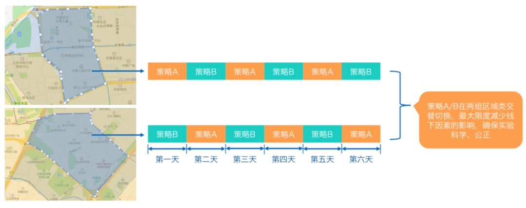 由于即时配送的场景较为特殊,比如按照配送区域或城市进行AB实验时,由于样本空间有限,很难找到没有差异的对照组和实验组,因此我们设计了一种分时间片AB对照的分流方法:支持按天、小时、分钟进行分片,多个时间片进行轮转切换,在不同区域、不同时间片之间,对不同的策略进行交替切换进行AB分流,最大限度减少线下因素的影响,确保实验科学公正。目前图灵平台支撑了美团配送、小象、LBS平台等BU的算法离线训练、在线预测、AB实验等,使算法RD更加关注算法策略本身的迭代优化,显著提高了算法RD的效率。未来我们会在以下方面继续深入探索:- 加强深度学习的建设,全面支持深度学习,实现深度学习相关组件与机器学习组件一样,在可视化界面可以和任意组件组合使用。