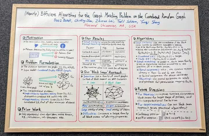 - 本届NeurIPS 上我最喜欢的海报展示:(Nearly) Efficient Algorithms for the Graph Matching Problem on Correlated Random Graphs,论文地址:https://arxiv.org/abs/1805.02349