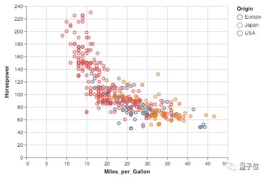 数据顾名思义,直接导入cars数据集即可。标记和编码则决定着绘制图表的样式,下面着重介绍这两部分。