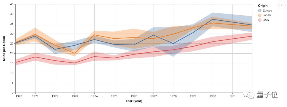 y=alt.Y(‘ci0(Miles_per_Gallon)’, axis=alt.Axis(title=’Miles per Gallon’)),