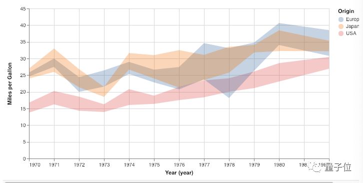 spread = alt.Chart(cars).mark_area(opacity=0.3).encode(