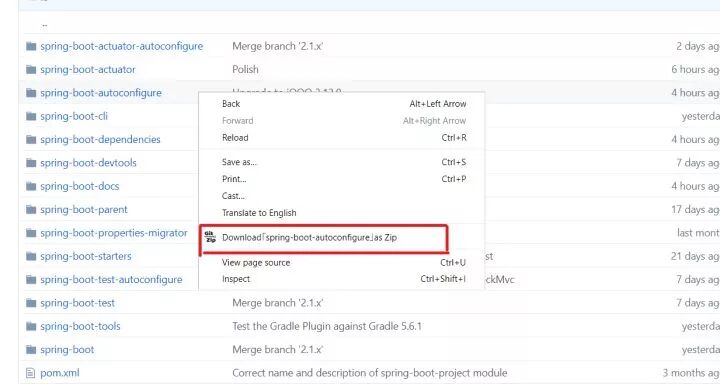 即可,图中我们下载了 spring-boot-autoconfigure 这个子模块的代码。