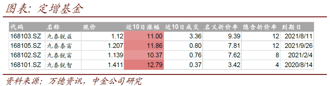 4、一个不太受到市场强调的是,缩短锁定期不仅降低风险,也大幅提高了定增基金的周转效率。以往的锁定期下,竞价定增实际锁定2年,5年期定增基金最后参与定增的时间是第3年末,而现在,只要其距离转LOF时限不超过半年,就可以再进行操作。同时,它们可以参与多轮定价定增了(以前只能在第一年参与一次,难度很大);