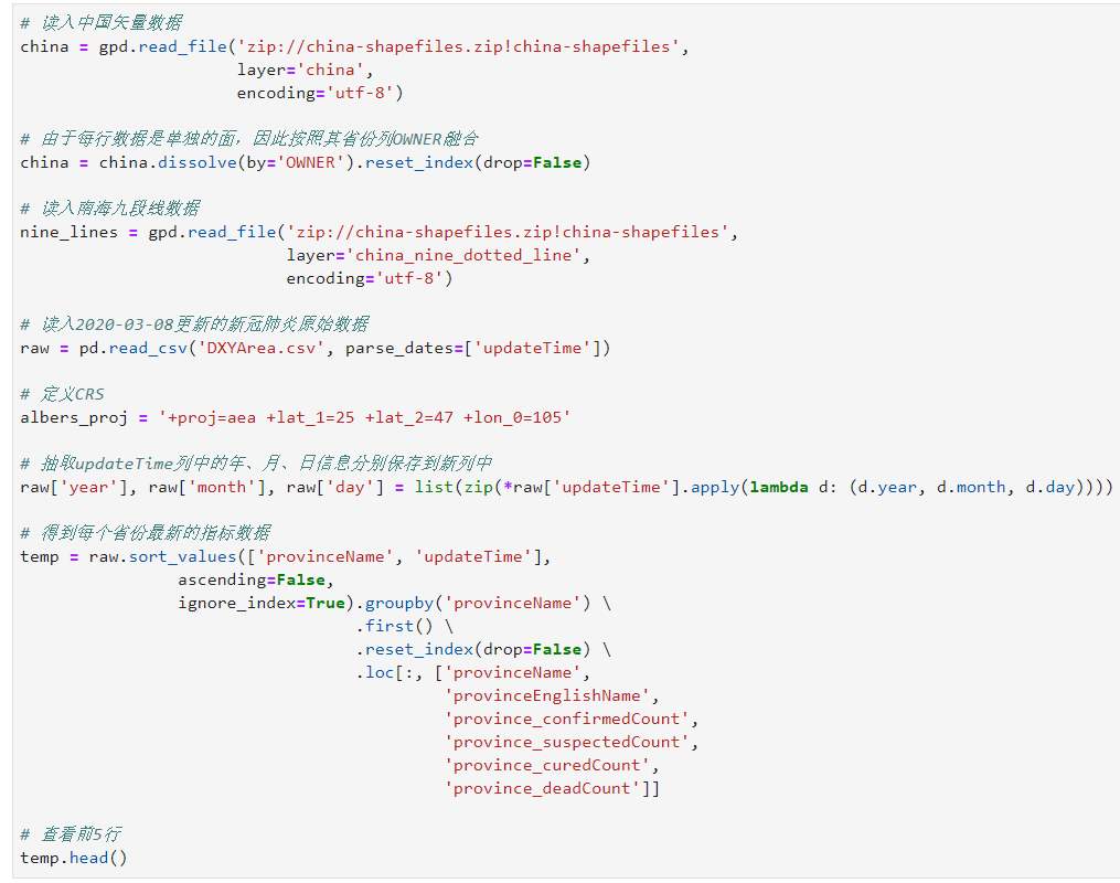 用到的数据是系列文章前几期使用地滚瓜烂熟的新冠肺炎疫情数据,数据处理过程同上一篇文章,这里不再解释: