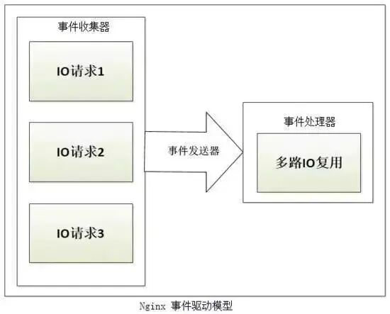 如上图所示,Nginx的事件驱动模型由事件收集器、事件发送器和事件处理器三部分基本单元组成。