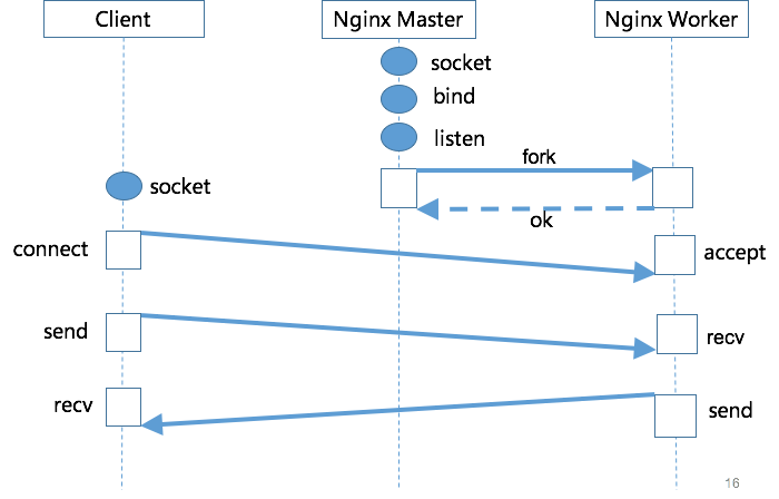 Worker 进程:处理客户端请求,从主进程处获得信号做相应的事情。