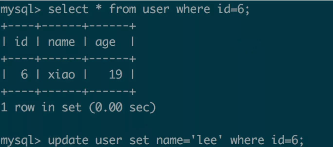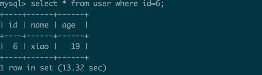 mysql> select * from user where id=6;