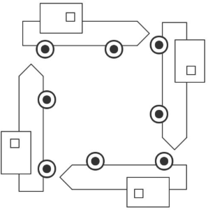 为了便于理解,我们把死锁看做4辆车彼此阻塞的场景: