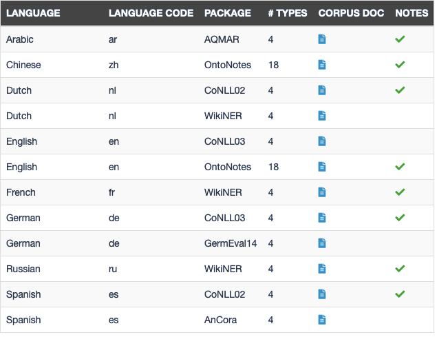 https://github.com/stanfordnlp/stanzaStanza 包含了 60 多种语言模型,在 Universal Dependencies v2.5 数据集上进行了预训练。这些模型包括简体、繁体、古文中文,英语、法语、西班牙语、德语、日语、韩语、阿拉伯语等,甚至还有北萨米语等不太常见的语言。除了语言模型外,Stanza 还支持了数十种语言的命名实体识别模型。完整列表如下:据 Stanza 的论文介绍,Stanza 涵盖了多个自然语言处理任务,如分词、词性标注、依存句法分析、命名实体识别等。此外,它还提供了 Pyhton 界面,用来和我们熟悉的 Stanford CoreNLP 库进行交互,从而扩展了已有的功能。另外值得注意的是,Stanza 是完全基于神经网络 pipeline 的。研究者在 112 个数据集上进行了预训练,但使用的是同一个模型架构。他们发现,同样一个神经网络架构可以泛化得很好。网络在所有语言上的性能都很好。整个神经网络 pipeline 都是通过 PyTorch 实现的。要运行首个 Stanza pipeline,只需要在 python 解释器 z 中进行操作: