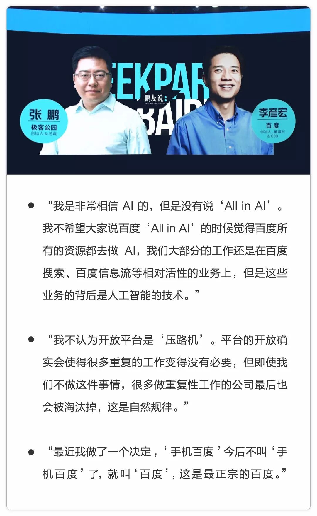 以下是李彦宏在此次极客公园创新大会上的分享实录: