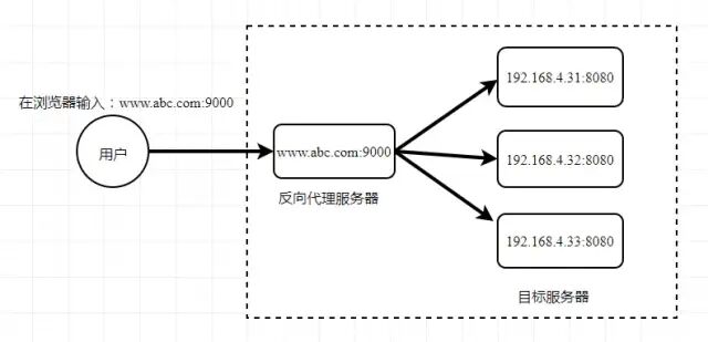 反向代理服务器和目标服务器对外而言就是一个服务器,只是暴露的是代理服务器地址,而隐藏了真实服务器的 IP 地址。