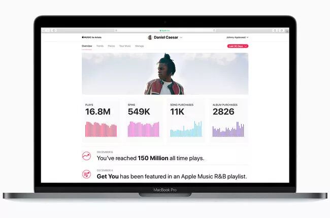 苹果近日发布了面向艺术家们的 Apple Music 的后台控制面板 Apple Music for Artists,方便艺术家们追踪用户的收听和购买习惯,并获取自己音乐作品在 Apple Music 上的销售数据分析。