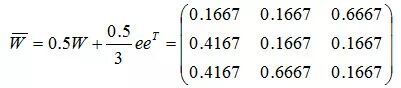 还是考虑第3节中的问题,我们取d=0.5,可以计算相应的概率转移矩阵为:
