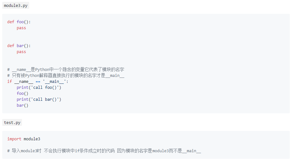 因此,我们可以把需要重复使用的代码自定义为函数。函数的好处我们在之前(为什么要使用函数 )有聊过,例如:便于调试、以及分工。但是,也会遇到不同的伙伴使用相同的变量进行定义,因此我们可以使用模块管理函数。要注意的是:模块编写的过程中,if条件下的这些代码是不会执行的,因为只有直接执行的模块的名字才是"main "。