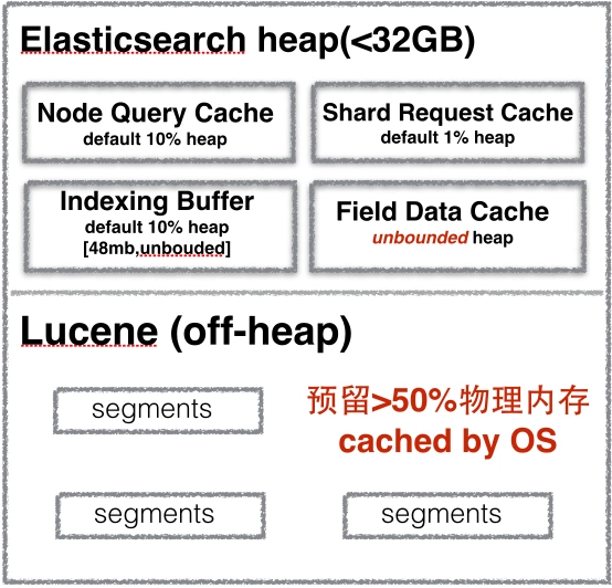 - JVM堆空间——主要用途:缓存(节点缓存、分片请求缓存、Field data缓存以及索引缓存)