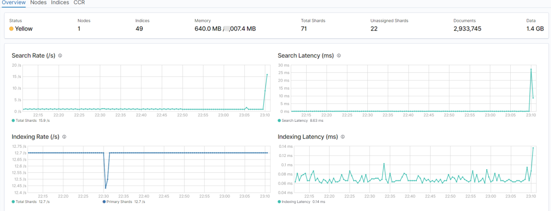 如果你查看Elasticsearch监控指标,一切都是绿色正常。