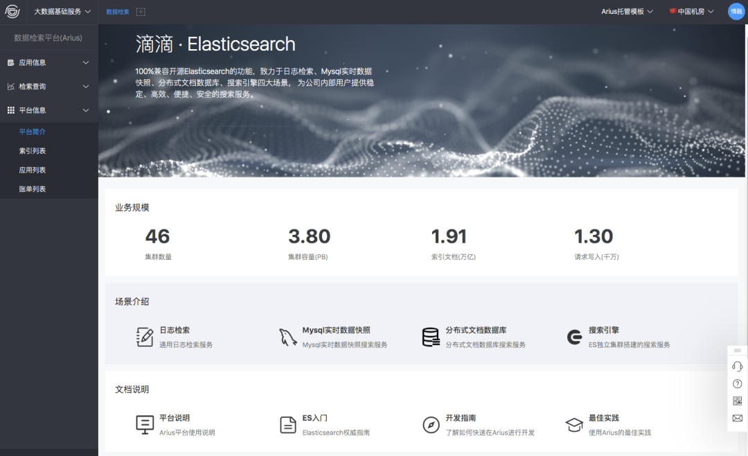 我们基于 ES 6.5.1 版本,完全重构了滴滴 ElasticSearch 用户控制台,其中将用户的一些高频操作,如:Mapping 设置/变更、数据清理、索引扩容缩容、索引转让、成本账单等开放给用户,提升用户的自助操作性。