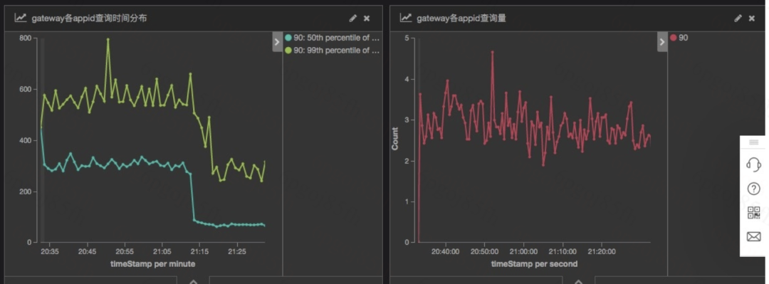 下图是客服订单列表查询语句升级前后的对比,50 分位耗时从 300ms 下降到 50ms。99 分位从 600ms 下降到 300ms。