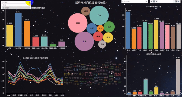 随着科技的飞速发展,数据呈现爆发式的增长,任何人都摆脱不了与数据打交道,社会对于“数据”方面的人才需求也在不断增大。因此了解当下企业究竟需要招聘什么样的人才?需要什么样的技能?不管是对于在校生,还是对于求职者来说,都显得很有必要。本文基于这个问题,针对51job招聘网站,爬取了全国范围内大数据、数据分析、数据挖掘、机器学习、人工智能等相关岗位的招聘信息。分析比较了不同岗位的薪资、学历要求;分析比较了不同区域、行业对相关人才的需求情况;分析比较了不同岗位的知识、技能要求等。- 爬取岗位:大数据、数据分析、机器学习、人工智能等相关岗位;