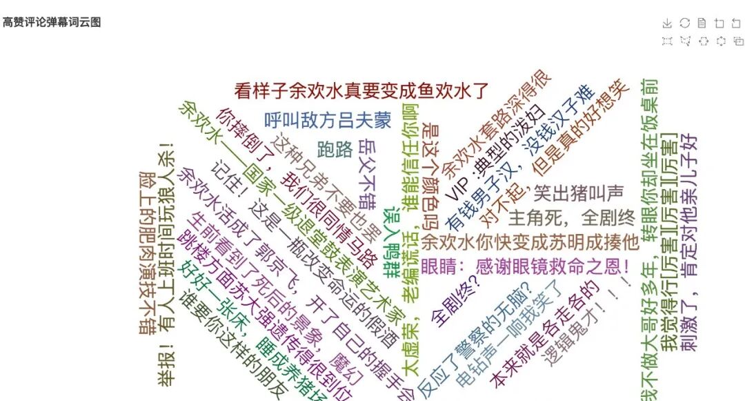 获取到的数据如下所示,共计爬取了 150252 条弹幕(每集平均12521条,每30s的间隔爬取),来看看弹幕下的余欢水。