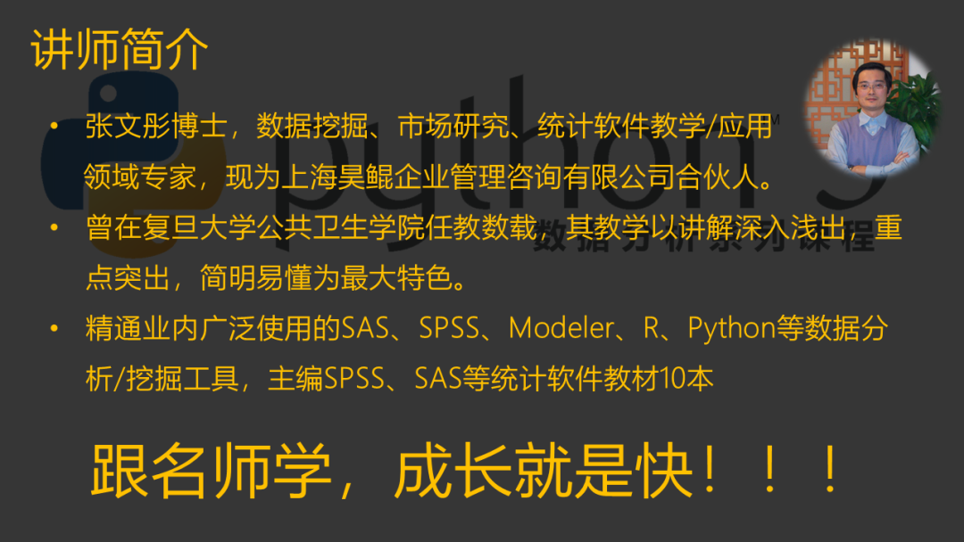 想学Python数据分析且毫无Python、编程经验的朋友可以先看看这门课程,看自己是否听的明白,如果听的明白,那么恭喜你,可以继续学习Python数据分析课程。