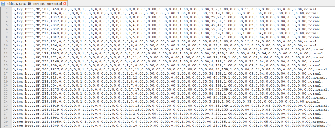 NORMAL:正常访问,训练集(10%)有97278个样本,测试集(Corrected)有60593个样本。