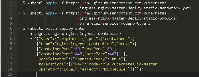 在这里,‘kind create cluster’命令用来创建集群;‘kubctl cluster-info’和‘kubectl get’命令用来检测集群的运行状态。接下来,我们要为集群设置ingress。为此,我们使用‘kubectl’命令将集群与KinD拟合: