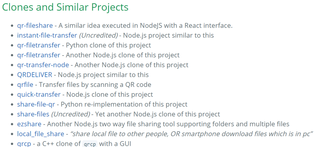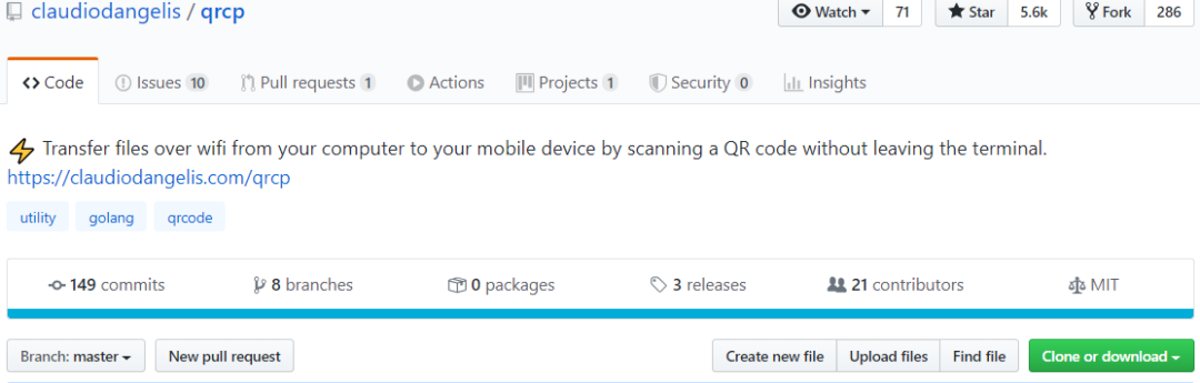 当你要从Amazon EC2,Digital Ocean Droplet,Google Cloud Platform Compute Instance或任何其他VPS传输文件时,这个功能就很有用了。除了qrcp,其实还有很多类似的工具,不知道你平常最喜欢的是哪一个呢?目前,qrcp已经在Github上标星5.6K,Fork累计286个https://github.com/claudiodangelis/qrcp