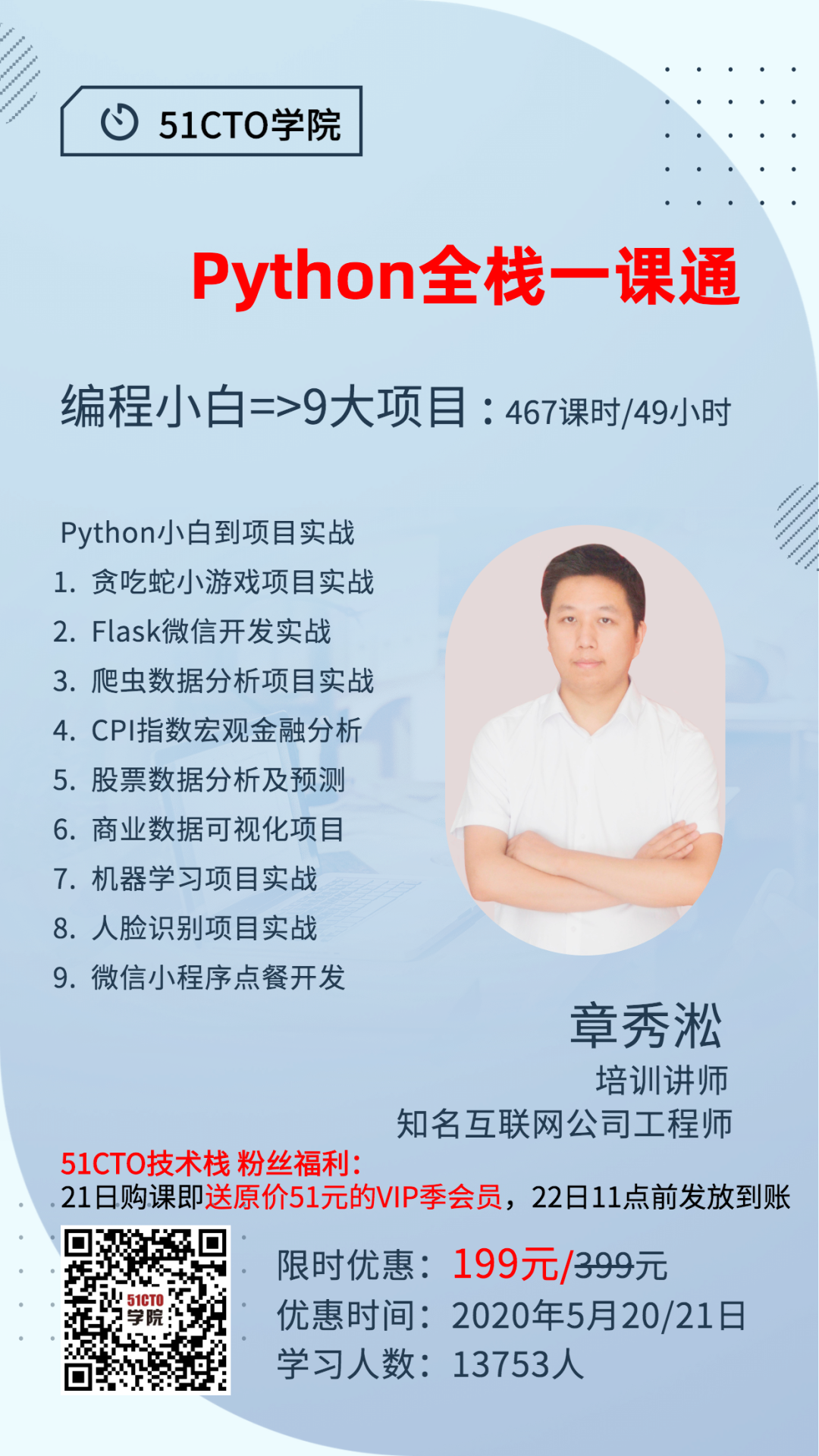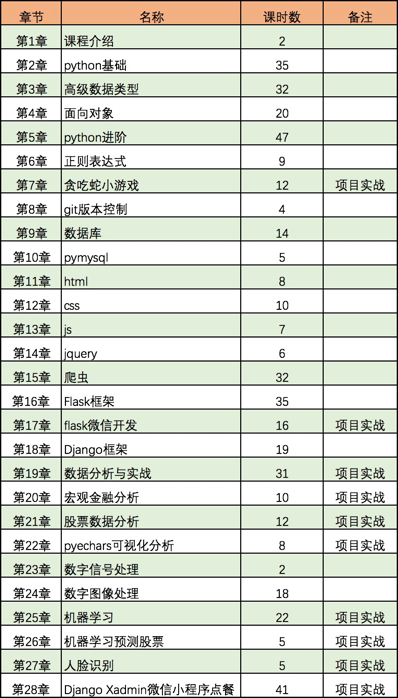 课程共9类实战项目,28个章节,49小时,467个课时,13753人学习,从0开始带你了解Python