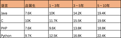 Python什么都可以做,那么收入情况怎么样呢?我在网上查了下,对比一下Java,C,PHP,Python 四种开发工程师的收入对比,从表格可以看到在这四种主流语言中,Python开发的收入雄踞榜首