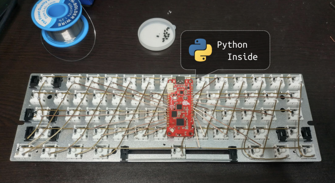 最后,作者把一个能够运行 Python 的开源控制板连接到键盘上。最终图示如下。