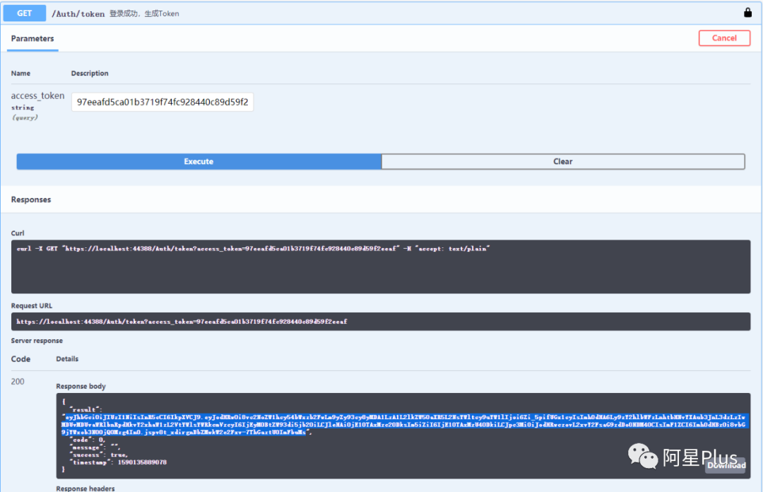 ... [HttpGet] [Route("token")] public async Taskstring>> GenerateTokenAsync(string access_token) { return await _authorizeService.GenerateTokenAsync(access_token); }...